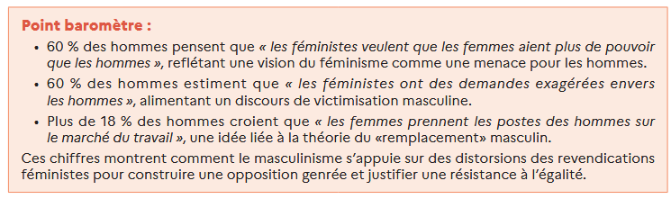 • une montée des discours antiféministes et masculinistes, notamment en ligne ;