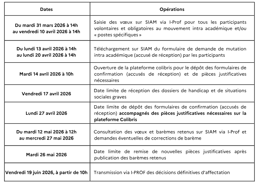 Calendrier du mouvement intra-académique 2026 : voici les démarches à faire