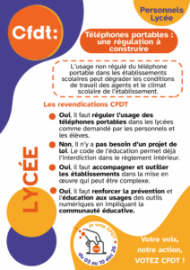 Pour la CFDT, la régulation de l’usage des téléphones est un besoin exprimé par les personnels et les élèves.