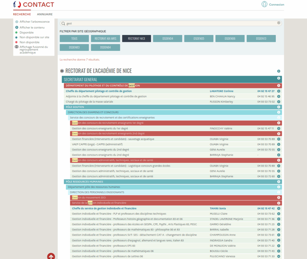 À partir de là, cliquez sur SERVICES. Il vous suffit alors de taper les premiers mots du service que vous recherchez – ici, « gestion » – dans la barre de recherche. Vous ferez ensuite défiler la page de résultats jusqu’à ACADÉMIE DE NICE.