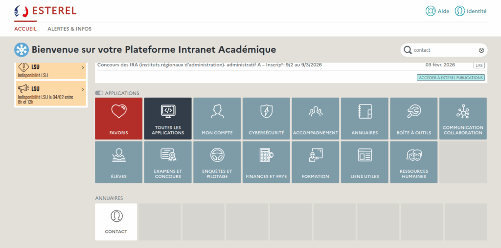 Vous devez chercher rubrique CONTACT  sur Esterel – il suffit de taper « contact » dans la barre de recherche.